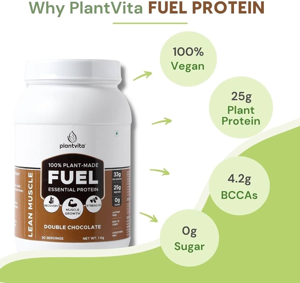 Plantvita Fuel Lean Muscle Plant Based Protein Powder For Men And Women Double Chocolate 1kg 25g Plant Protein From Pea Protein And Brown Rice Vegan Protein Powder Turmeric Extract Digestive Enzymes 4 2g